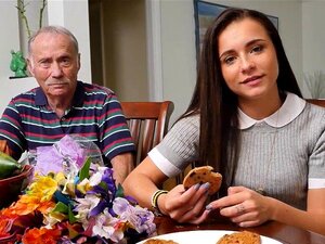 Söt brud suger gammal gubbe tills sperma i munnen. Söt skönhet suger gammal gubbe tills sperma i mun
